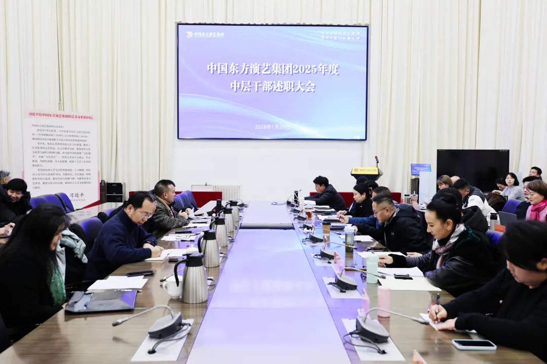 岁序更替,华章日新。为加强干部队伍能力建设,推动集团高质量发展,中国东方演艺集团于1月29日组织召开中层干部年度述职大会。本次会议涵盖集团21个部门、艺术培训学校及4家子公司。大家围绕部门职能与实际工作开展情况,通过“讲成绩、晒数据、谈思路、列举措”的方式,系统梳理了过去一年的工作成果与经验,并对新一年的目标任务与发展路径进行了深入规划和展望。2025年,中国东方演艺集团在艺术创作、各类演出、对外交流、艺术教育、文旅融合、数字创新、剧院运营七个业务板块,努力实现艺术创新,企业增收,事业发展。集团领导们肯定了大家一年来的工作成绩,也深入剖析了存在的短板与缺陷,提出改进措施,并激励全体干部职工以更加饱满的热情推动集团发展再上新台阶。面向2026年,集团将肩负新使命,迈向新征程。坚持以人民为中心的创作导向,以独特的艺术风格和艺术特色,表达中国情怀、彰显东方特色,努力创作更多无愧于时代的优秀作品。用艺术讲好中国故事,唱响新时代的主旋律,舞出中国人的精气神,为繁荣发展文艺事业、推进文化自信自强、建设社会主义文化强国贡献更大力量。